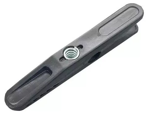 Acessório utilizado em cabides para prender saias, bermudas, calças ou até mesmo blusas sem alças.